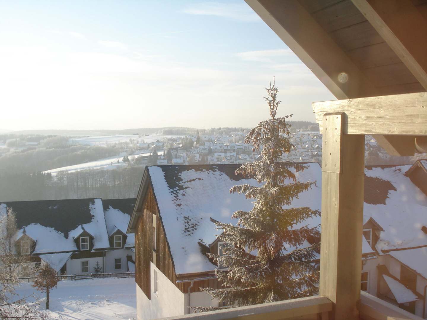 Morgendlicher Blick vom Balkon Richtung Rezeption