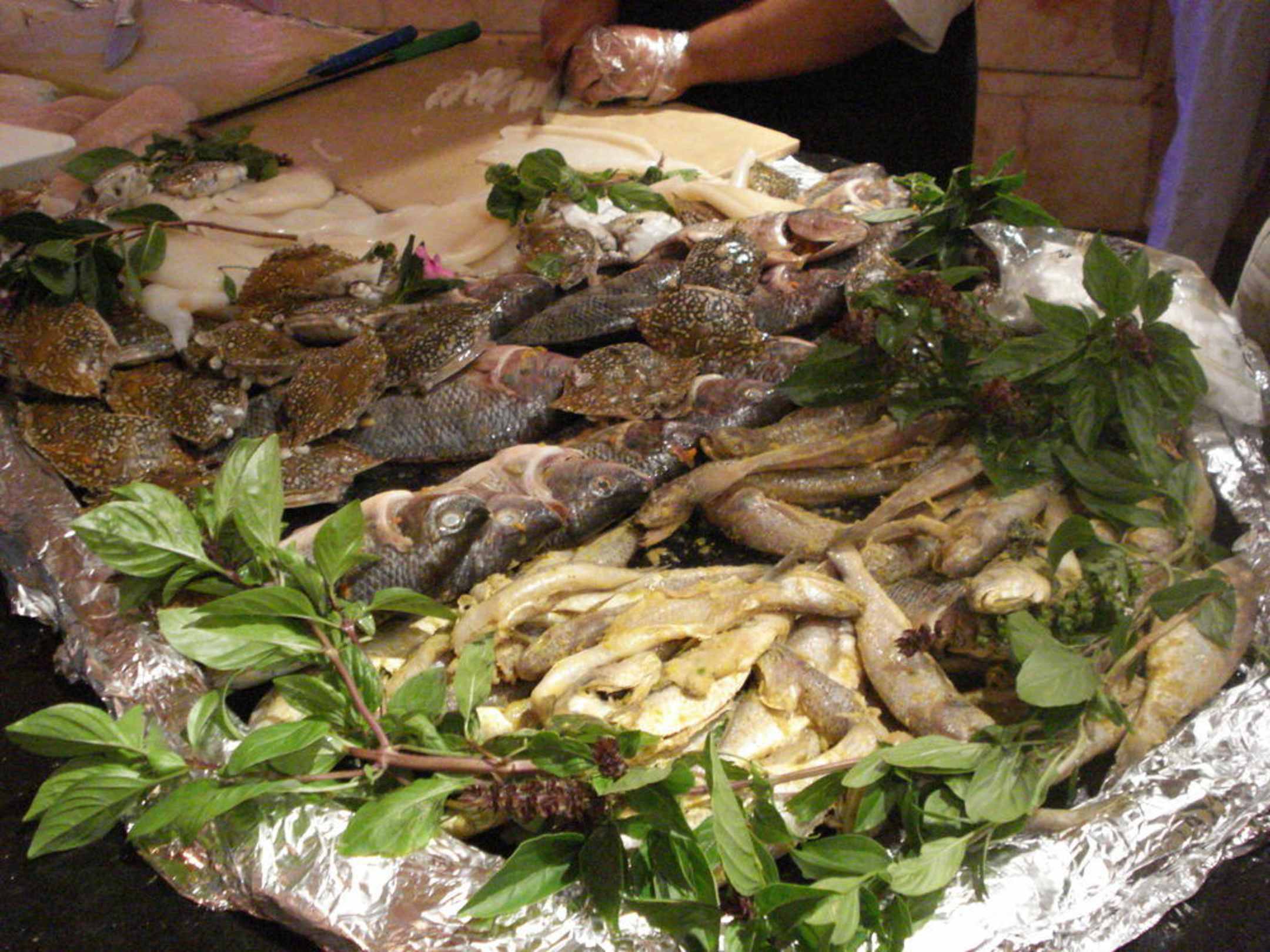 Frisch-Fisch-Buffetes gab Krabben, Barschfilett, Garneelenn, Kalamaris und Fische die ich nicht kannte....aber alles sehr lecker