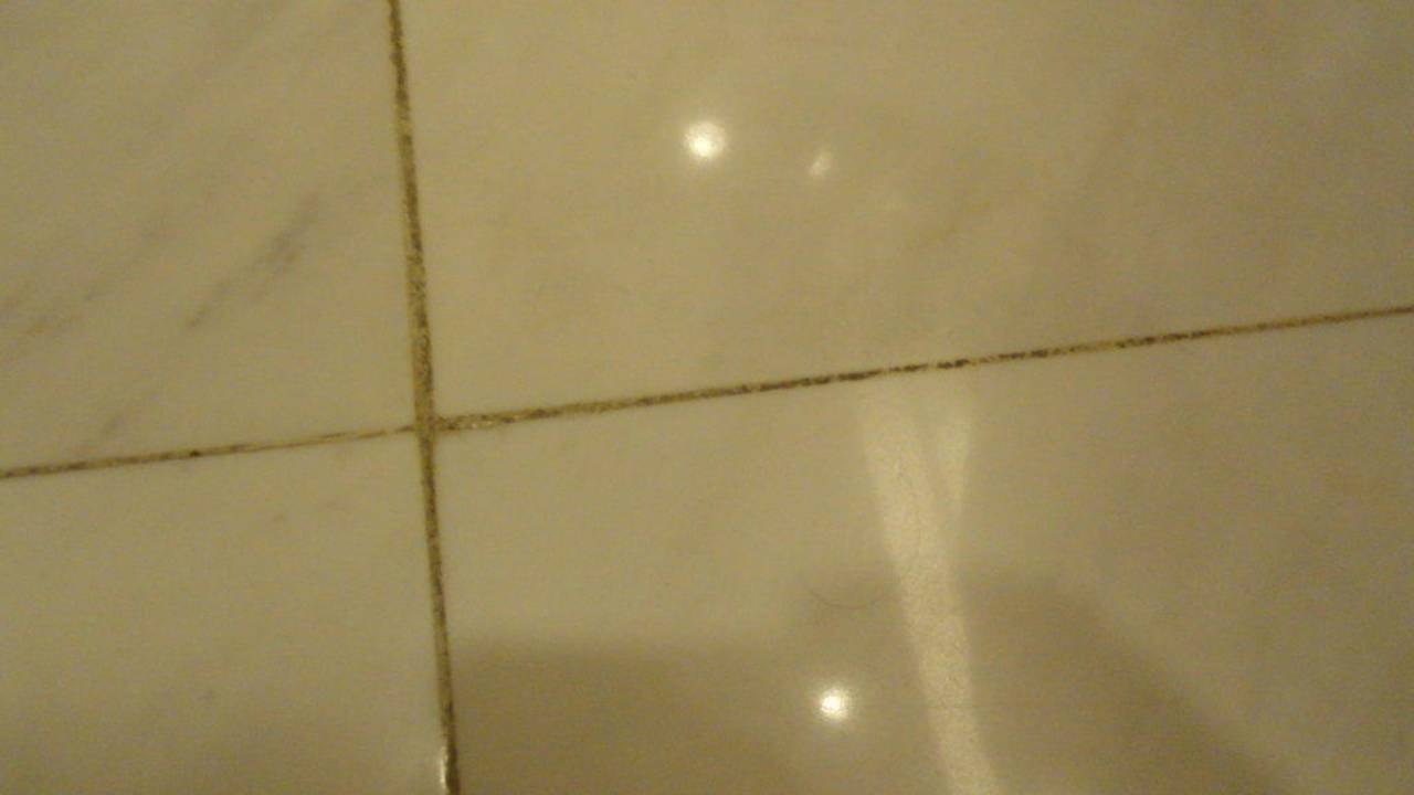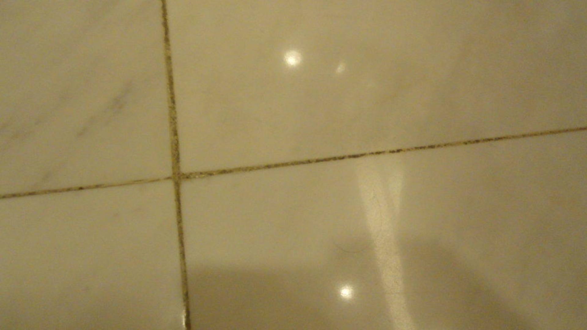 Alle Fugen im Badezimmer schwarz/gelb/orange kaum noch weiss zu sehn