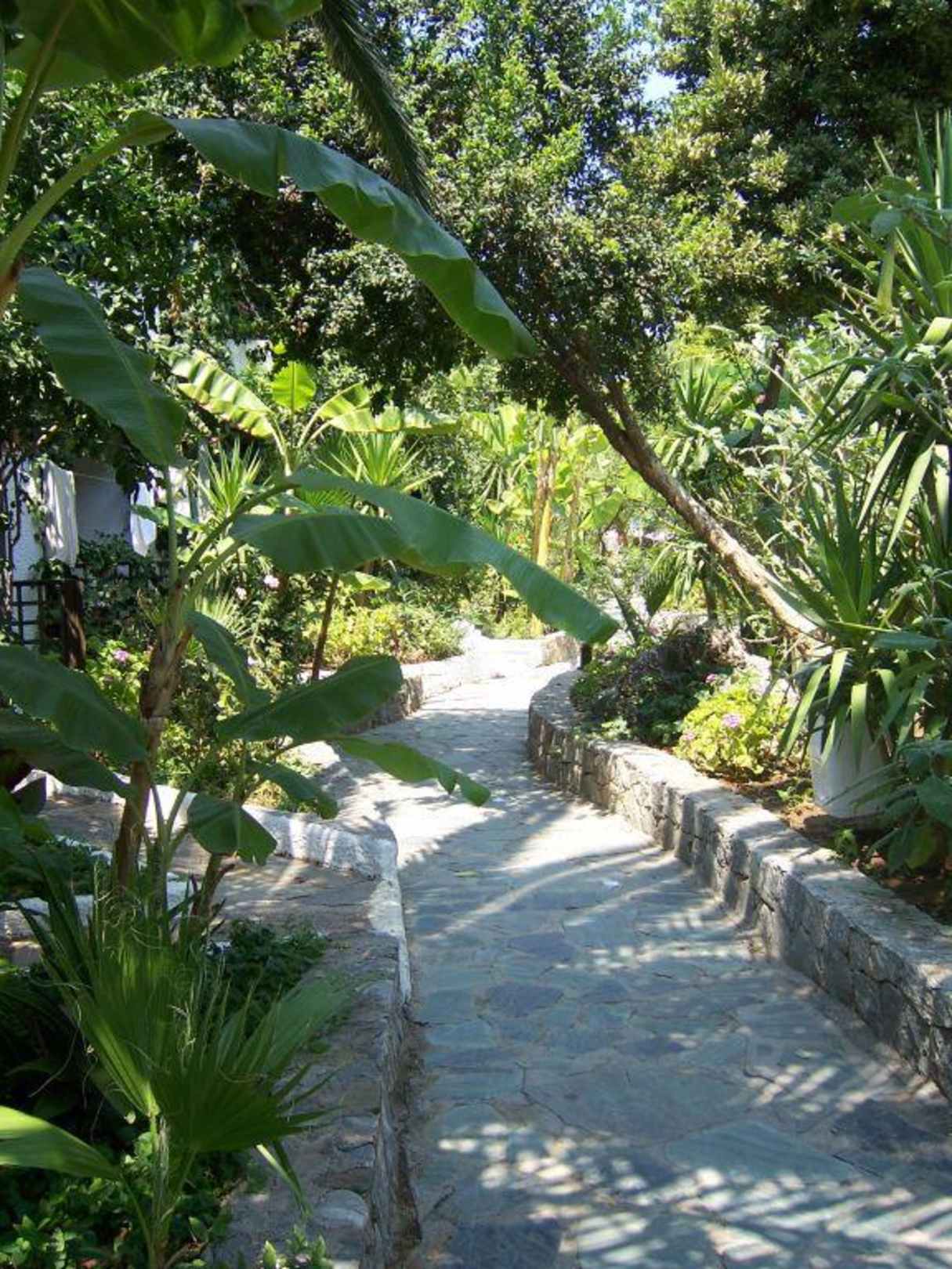 Der Gang durch die Anlageein wunderschöner Garten erstreckt sich über den Weg von der Rezeption zu den Zimmern bis am Ende das Meer auftaucht