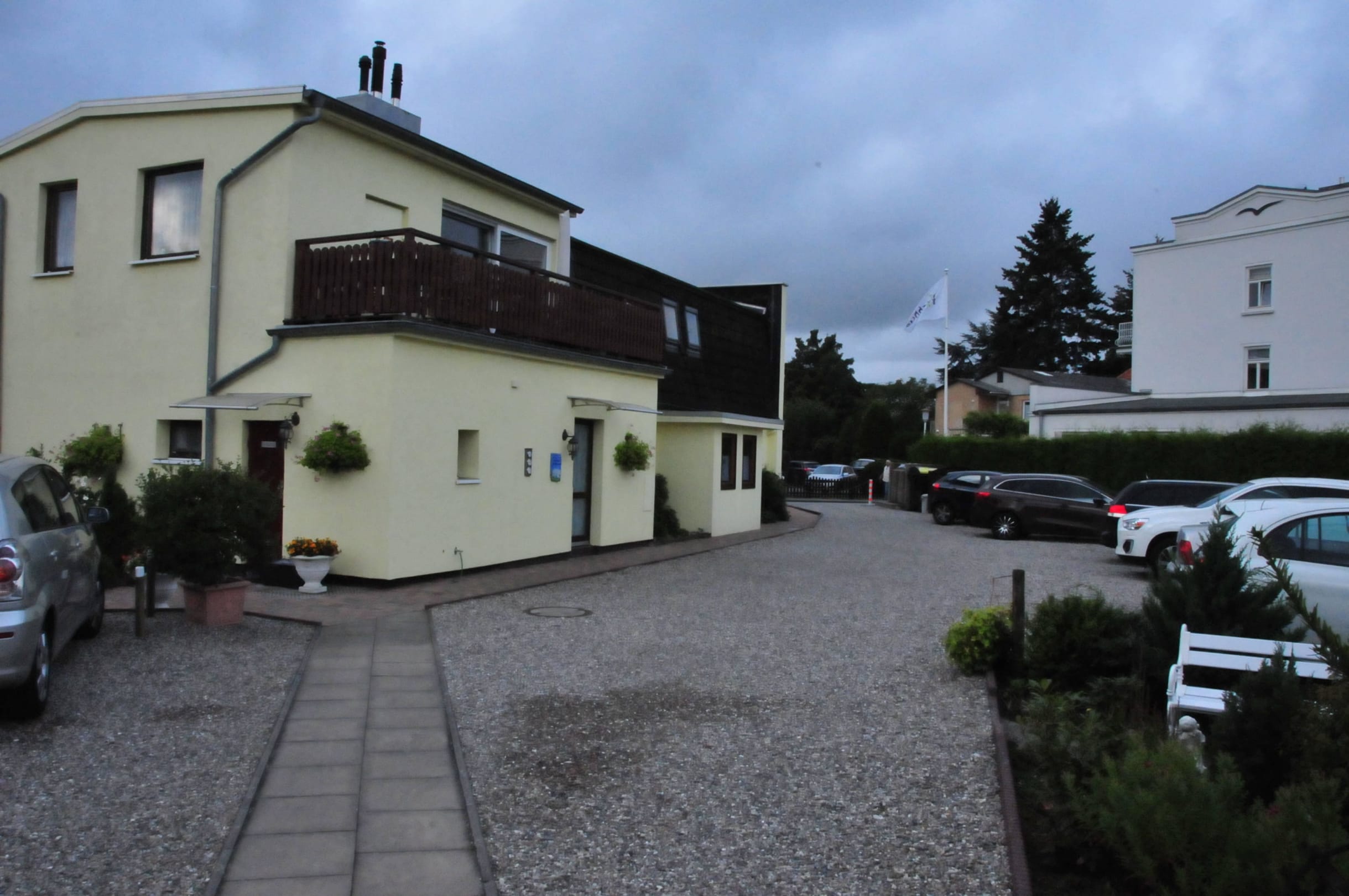 Parkplatz und Wohnaus