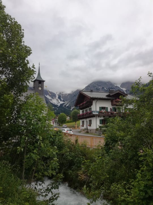 Haus Fersterer mit Kirche und Hochkönigmassiv