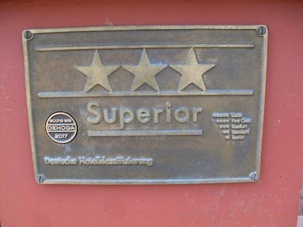 Drei-Sterne -und- Superior-Schild am Eingang des Hauses Hainstein.