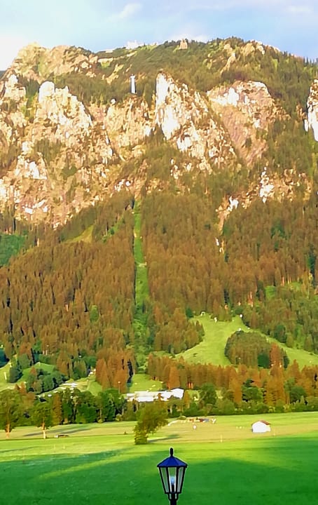 Blick auf die Tegelberg-Seilbahn