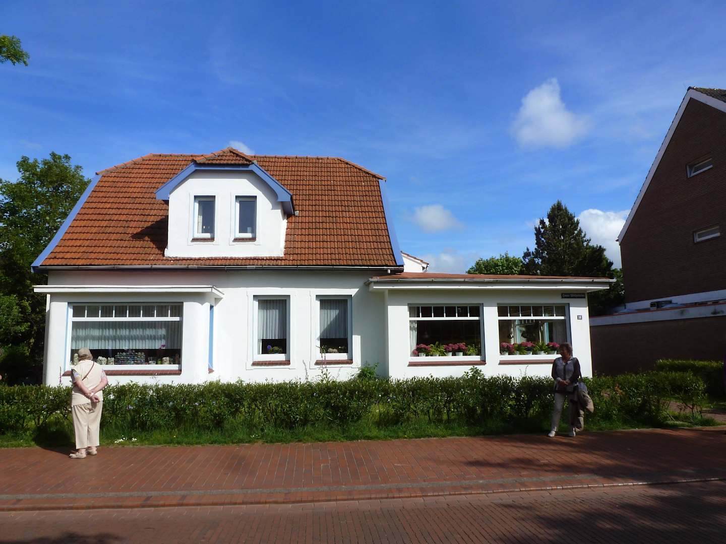Es gibt nur wenige Feriengäste, die nicht vor diesem Haus stehen bleiben und bewundern. Hübsch sind die Fenster mit Hortensientöpfen und Grünpflanzen bestückt und sind ein wahrer Blickfang.
