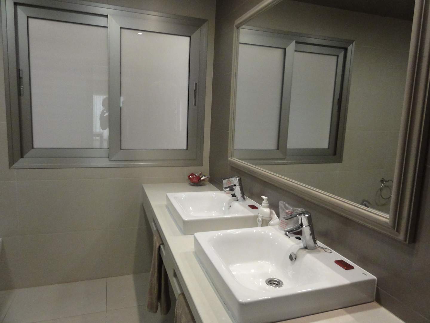Zwei Waschbecken u. Fenster im Bad - Toll!