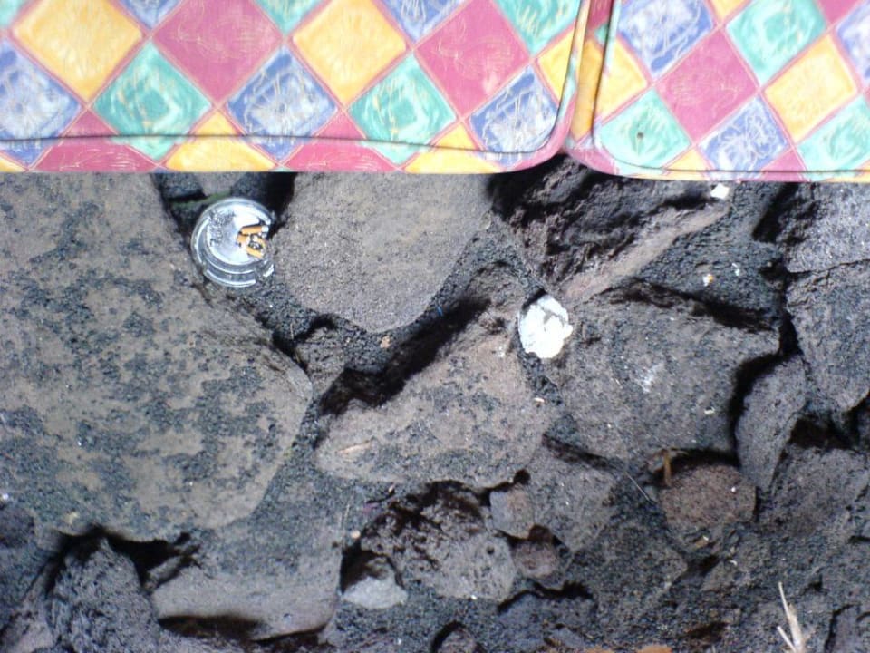 In der Lobby, Sitzgruppe direkt neben dem Empfang. Der Zustand hat sich in über einer Woche nict verändert. Schmutz direkt neben den Sitzkissen wird nicht entfernt.