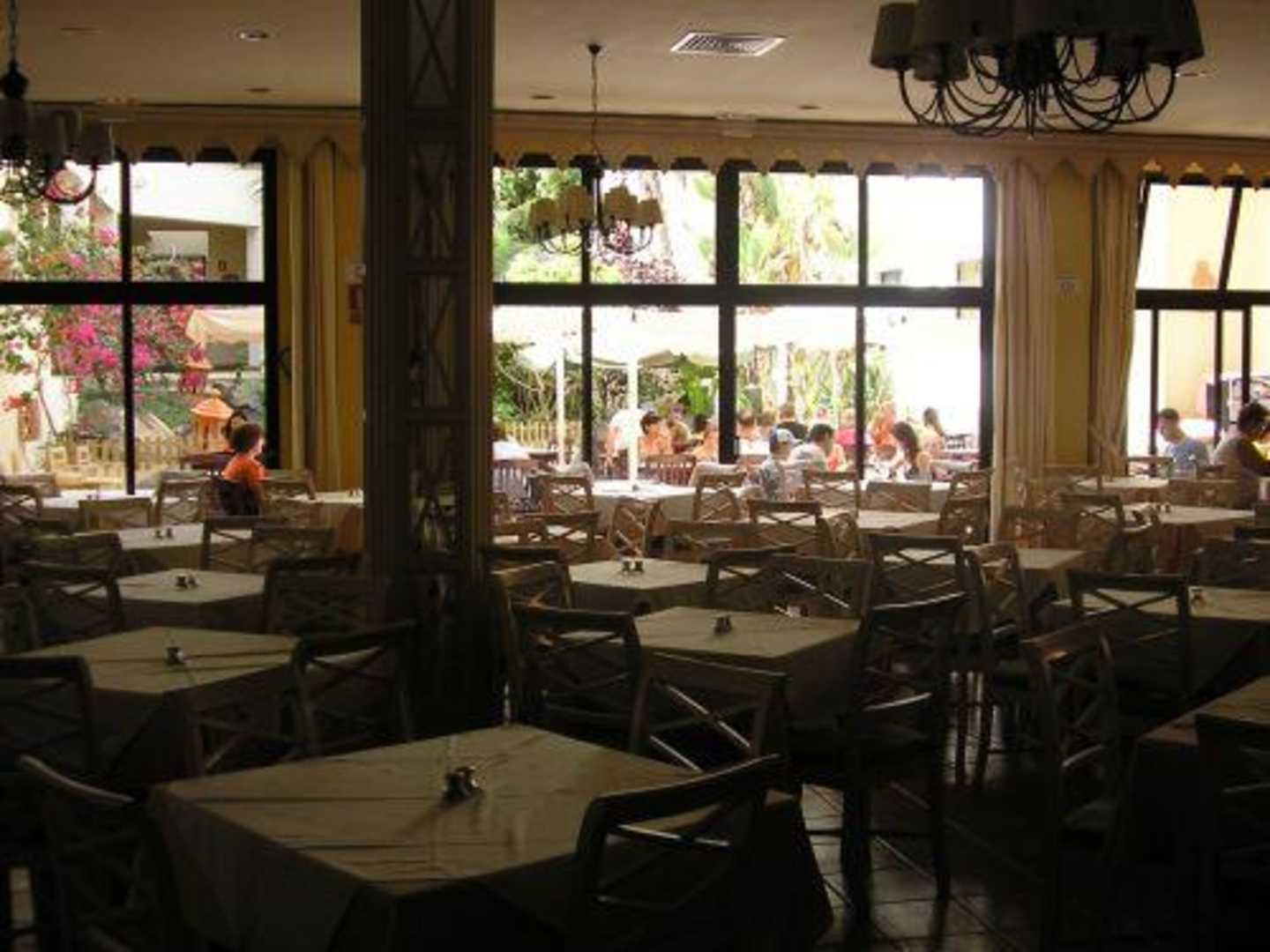 Restaurant mit Blick auf den Innenhof wo man sehr schön draussen essen kann