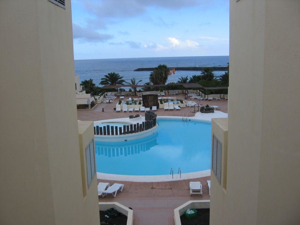 Foto aus dem 3. Stock über den oberen Pool aufs Meer