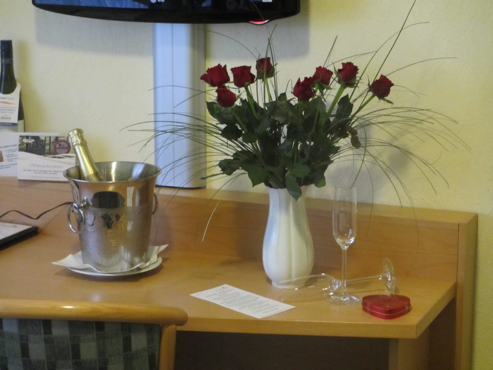Rosenstrauß, Sekt u. süßes Präsent