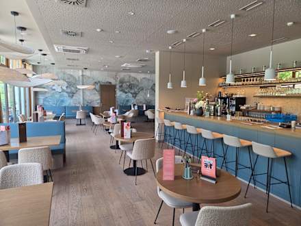 Modernes Bistro mit Terrasse.