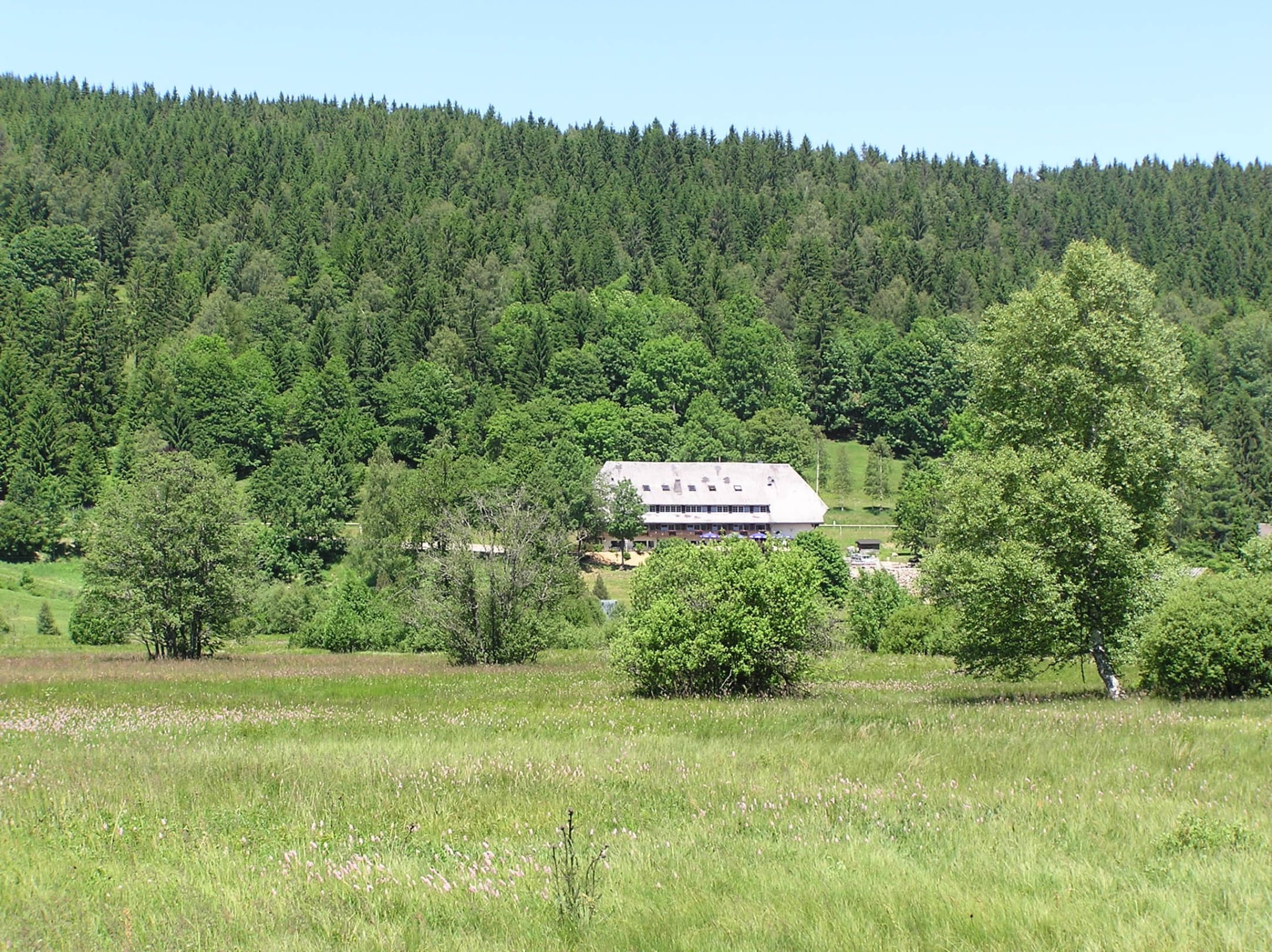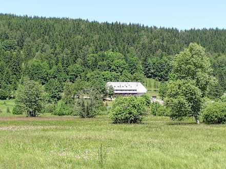 Blick auf den Heizmannshof vom Rundweg aus