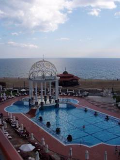 BLick auf den Pool vom Zimmer
