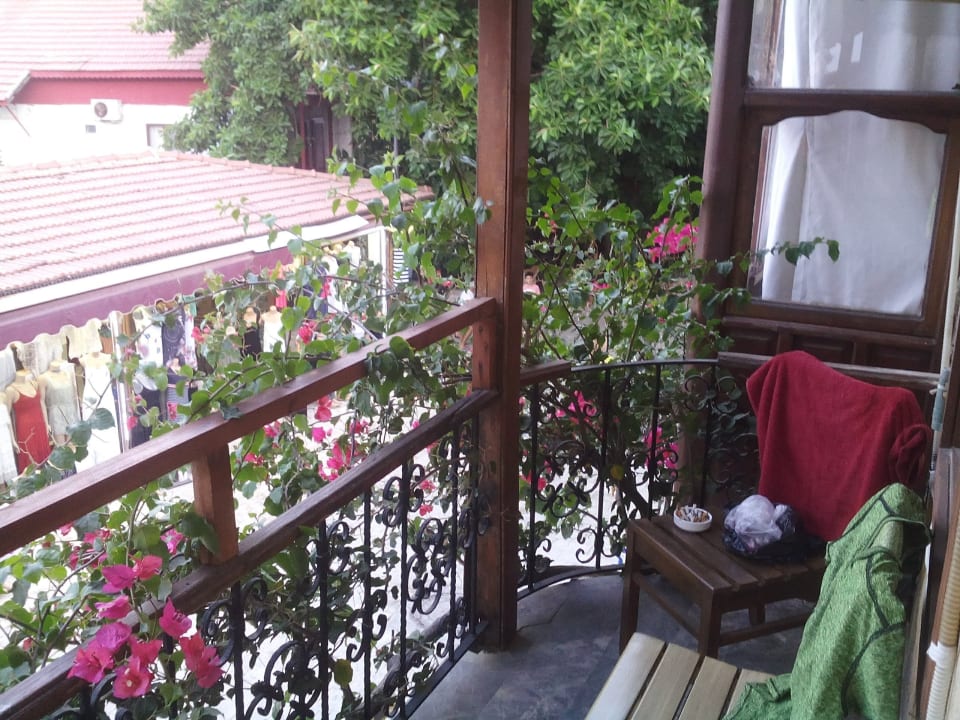 Blick vom Balkon auf die Straße.