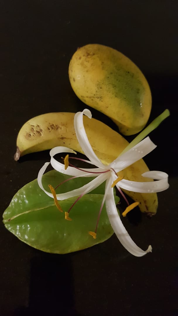 Früchte mit einer Blüte aus dem Hotel Garten
