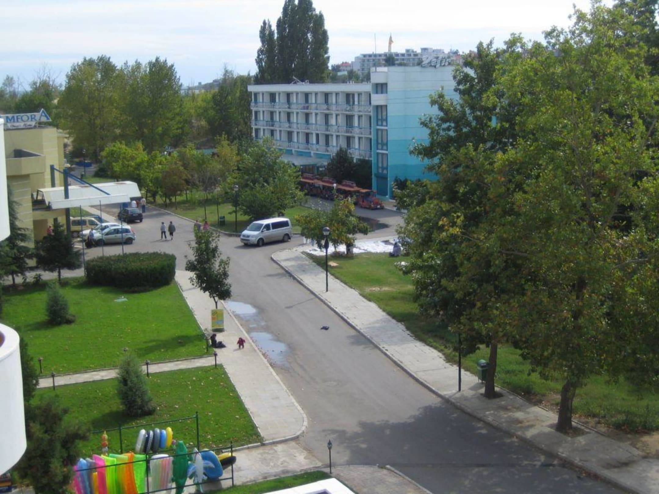 Aussicht von dem BalkonLinks das Nachbar - Hotel "Amfora", gerade zu das Hotel "Kotva" ( wo die Bimmelbahn hält )