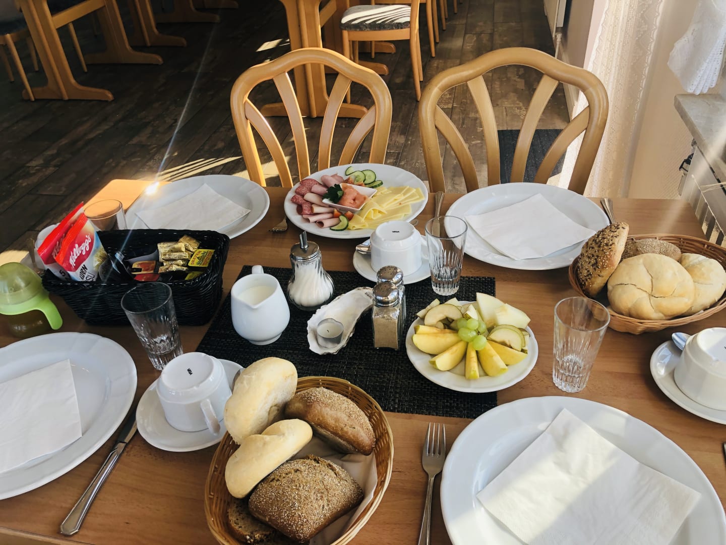GastroFrühstück mit Meerblick. Wahlweise bei gutem Wetter auch draußen. Wir waren mehr als zufrieden. Tolle Gastgeber