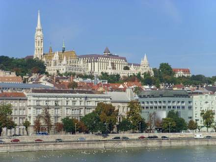 Blick aufs Hilton, Fischerbastei und Burgviertel von der anderen Donauseite aus