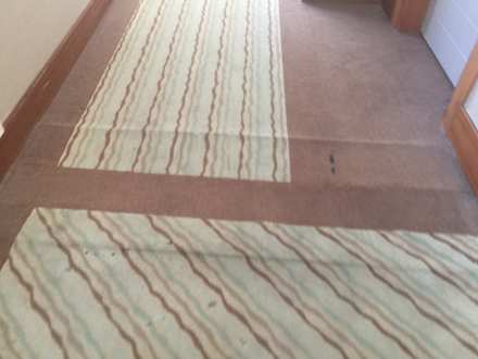 Dreckiger Teppich im Flur mit Stolperfalle