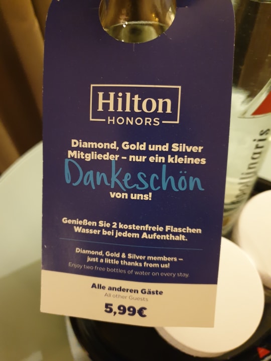 ZimmerWasser auf dem Zimmer leider nur für "Hilton Members" gratis, alle anderen müssen 5,99 EUR pro Flasche Wasser bezahlen