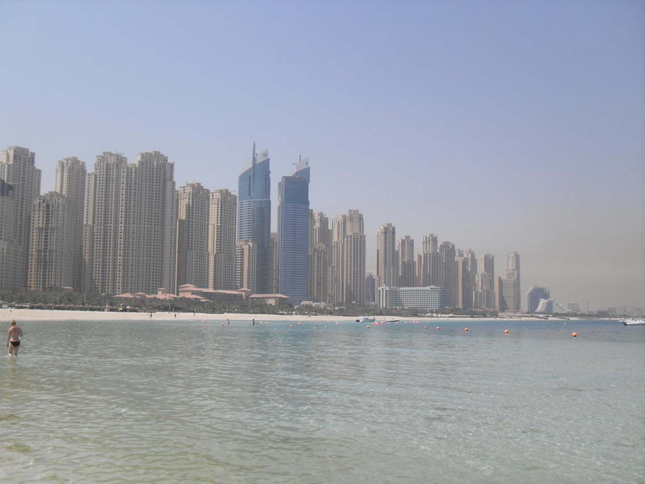 Das Hotel Hilton Jumeirah Beach sieht ganz klein aus vor all den Wolkenkratzern. Der Strand ist super schön und das Wasser klar, leider im MAI/JUNI fast 30-35 grad! Man kann nicht lange im Meer baden.