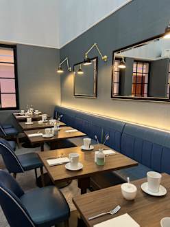 Wunderschöner Frühstücksraum mit bequemen Sitzgelegenheiten.