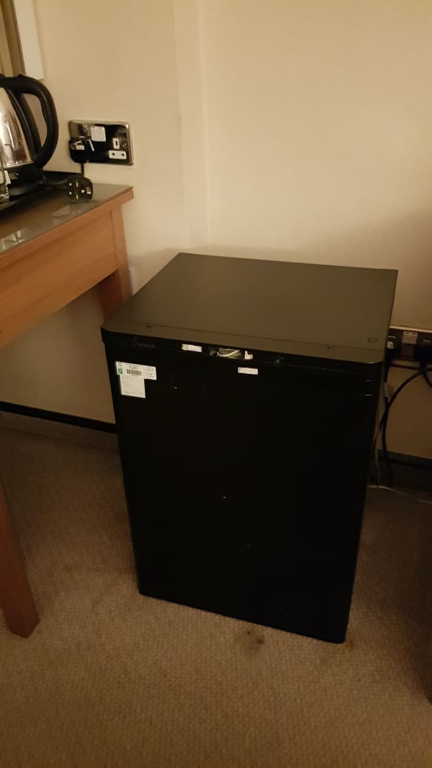 Zimmer 820 im Tower Wing. "Minibar" außerhalb des dafür vorgesehenen Schrankes.