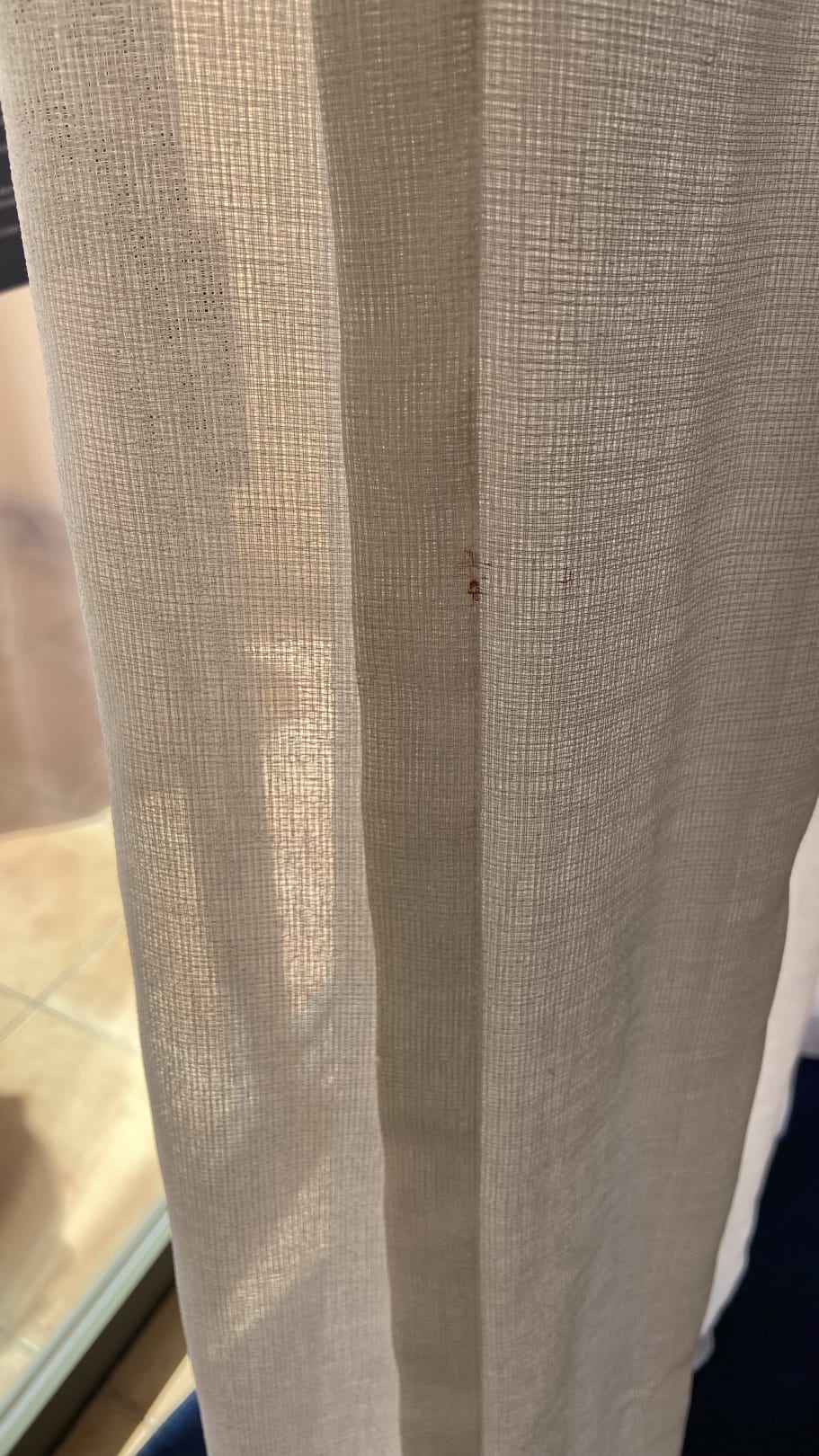 Blutfleck an der Gardine von Gast vor uns