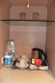 Wasserkocher mit Teebeutel und löslichem Kaffee