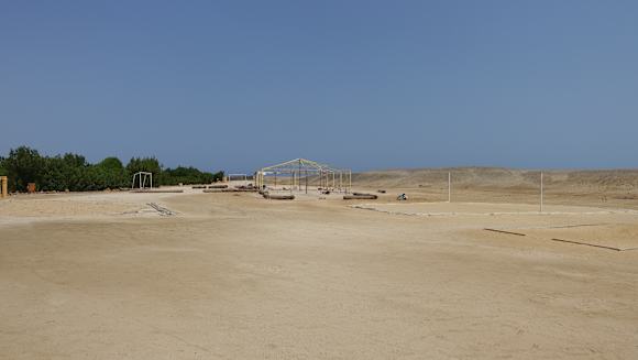 Für uns ungepflegte Außenanlage am Strand mit Volleyballplatz und...