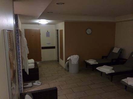 SaunabereichDer Saunabereich ohne Tageslicht, die Beleuchtung war nicht komplett eingeschaltet, es war sehr finster. Handtucheimer quillt über. Frische Handtücher ausreichend vorhanden. Ein Duftstoff für den Aufguss nach Rückfrage. Das ist kein Ort der Erholung.