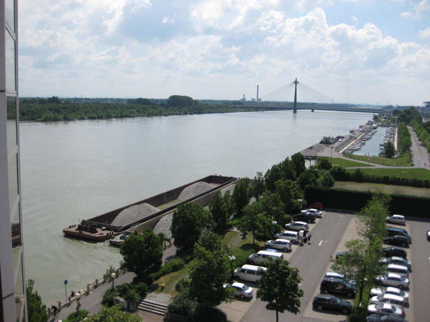 Blick vom Zimmer, links die Donau