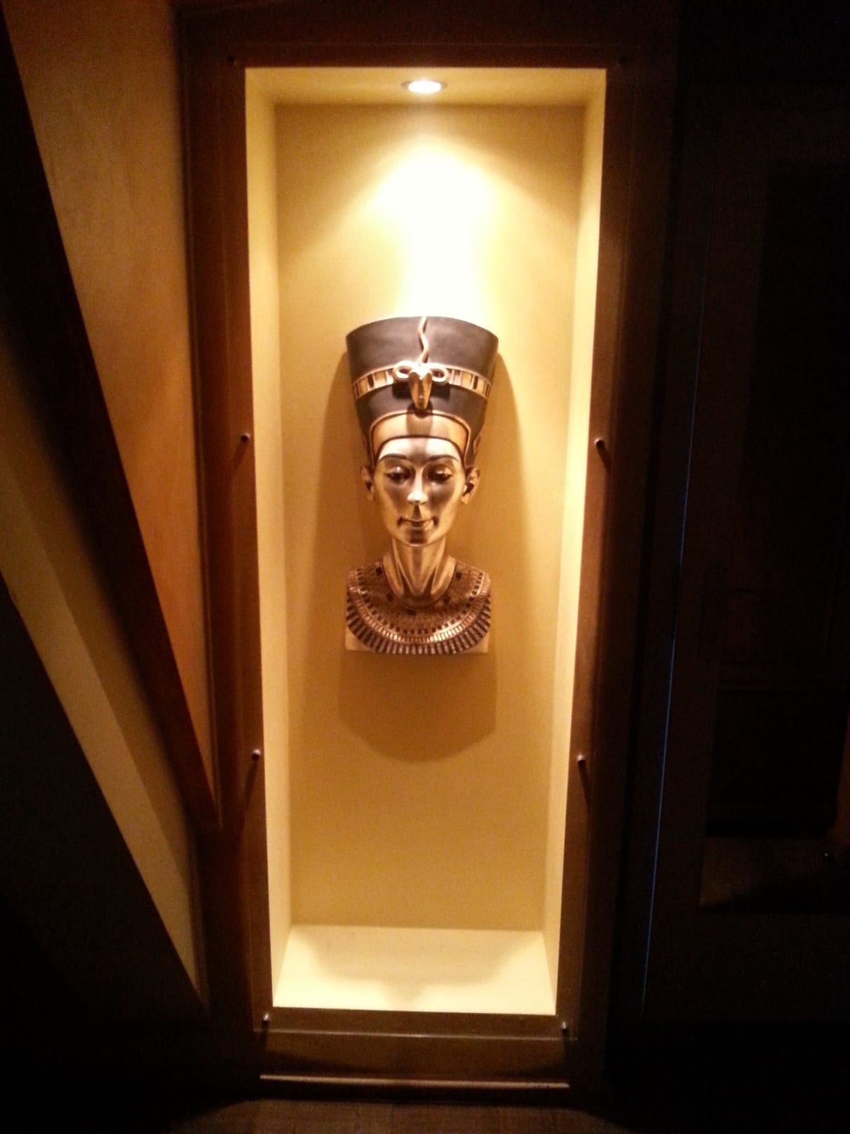 Blickfang pur: Nofretete hinter Glas im Zimmer