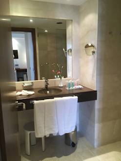 ZimmerBad; im Vergleich zur Junior-Suite mit nur einem Waschbecken