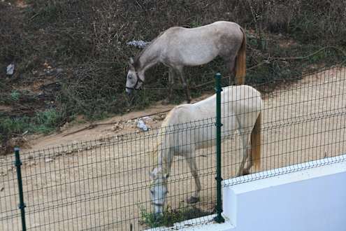 Pferde auf der Wiese neben dem Hotel