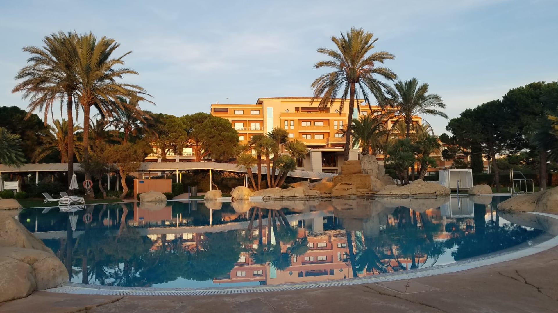 Kurz vor dem Sonnenuntergang am Pool