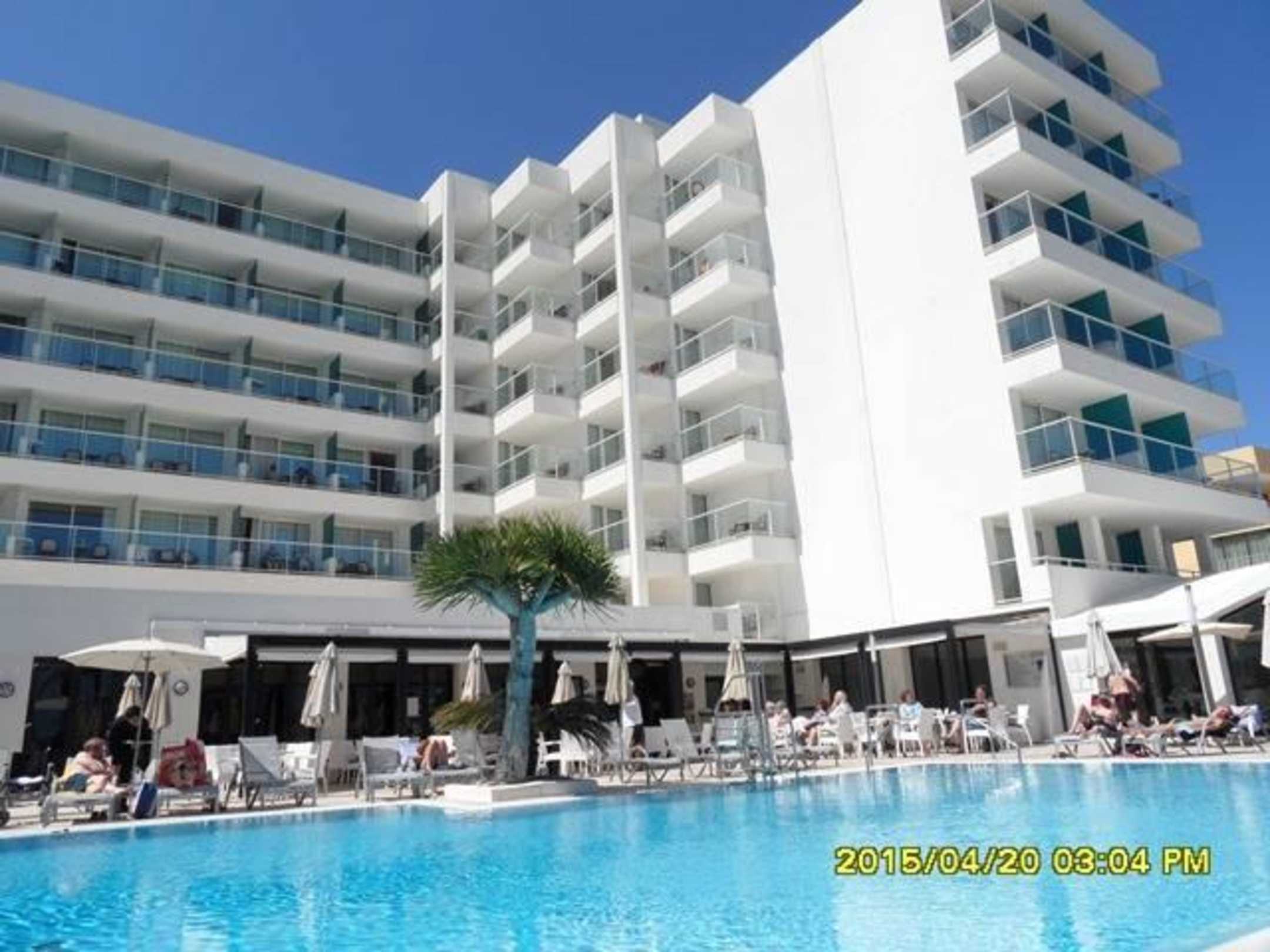 Blick vom Pool aufs Hotel