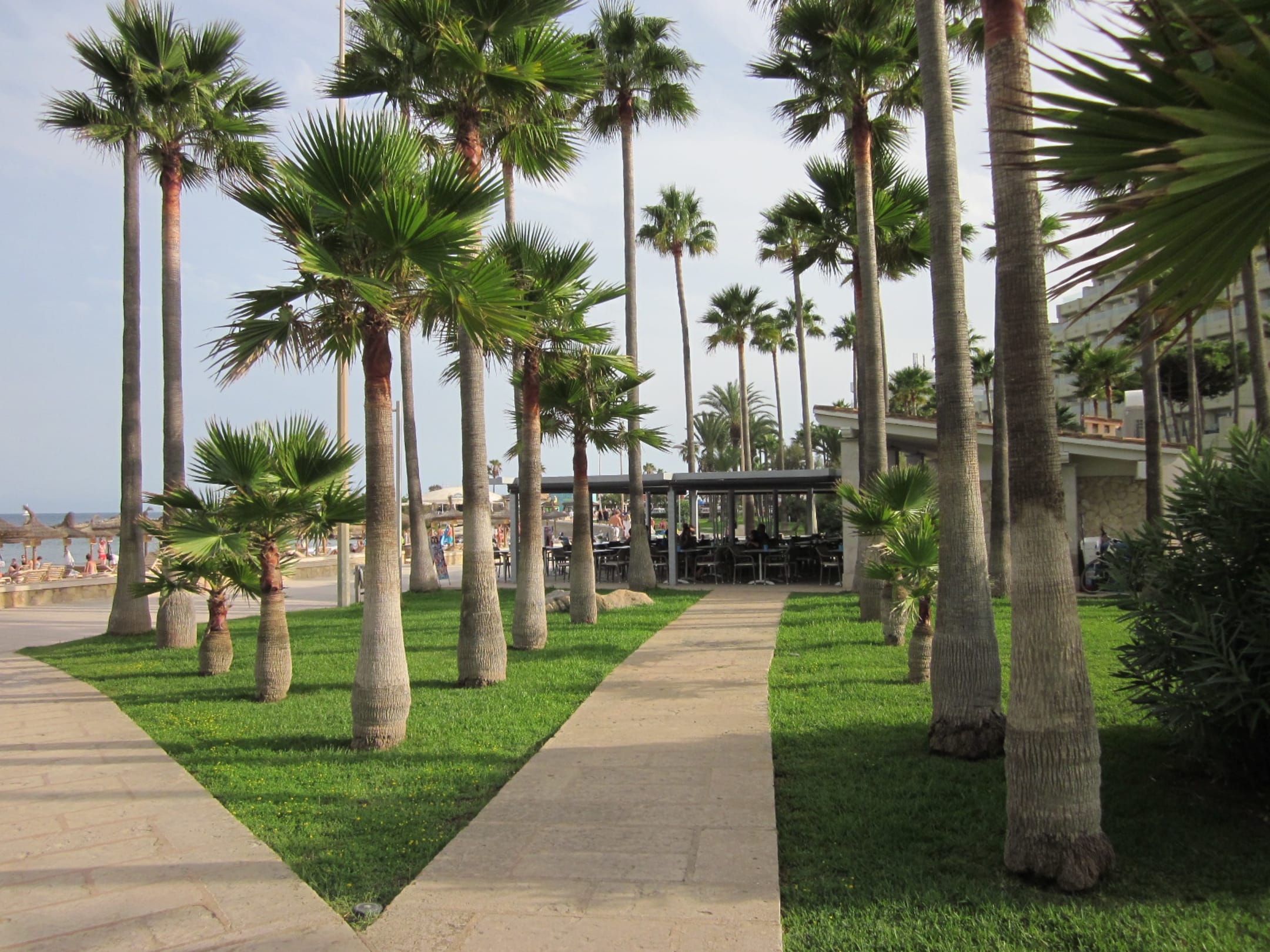 Strandbar mit Palmen vor dem Hotel