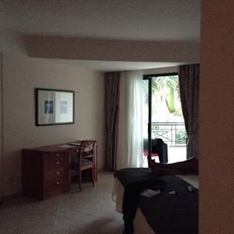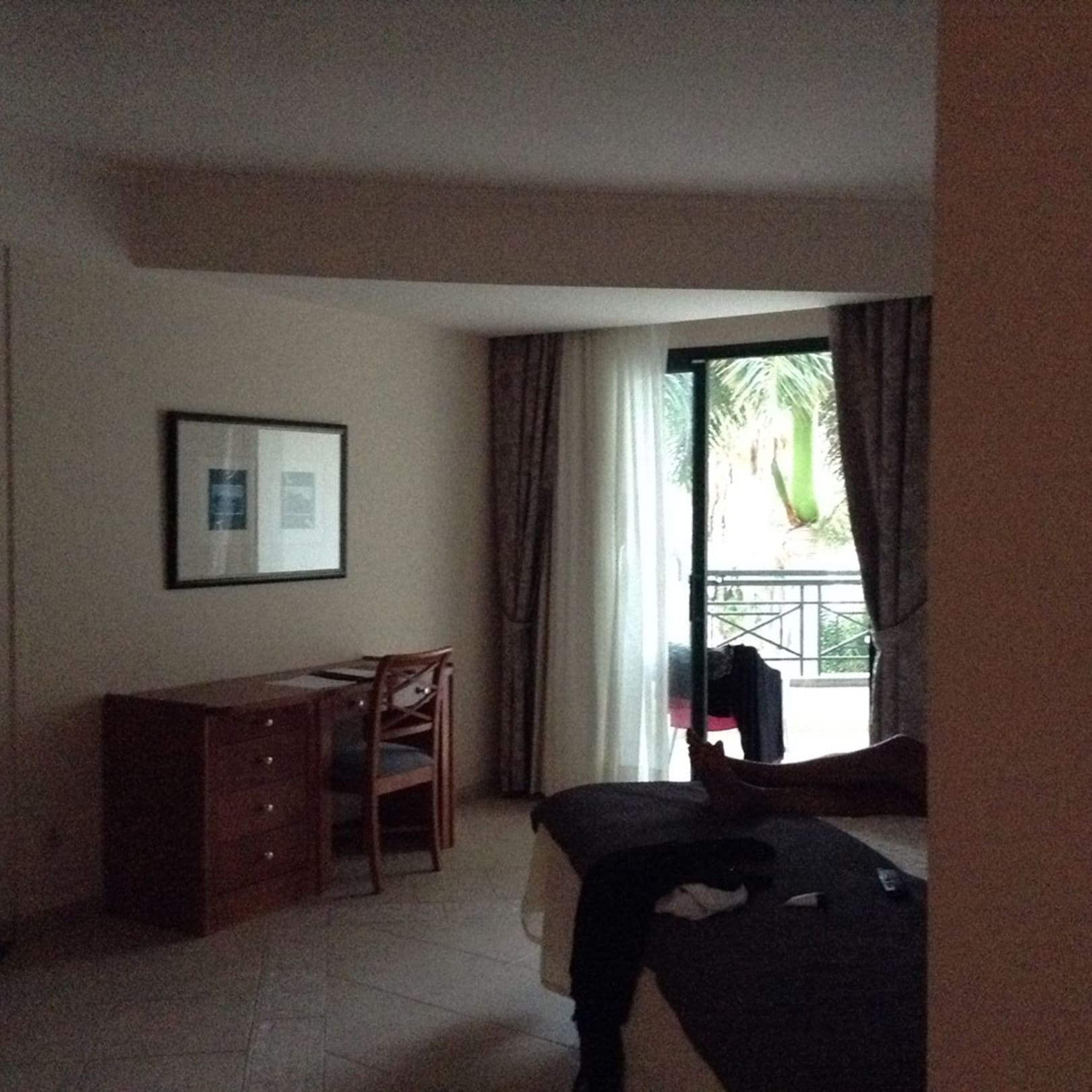 ZimmerDunkeles Zimmer, angeblich soll es Meerblick haben, aber Palmen ohne ENDE :-(