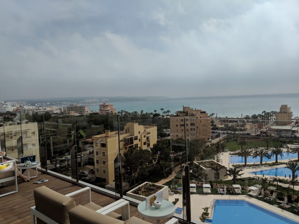 Ausblick von der Rooftop Bar Richtung Hafen von Arenal