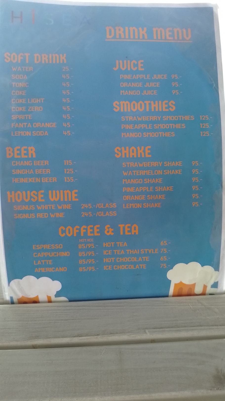 Die Getränkekarte des Hauses.