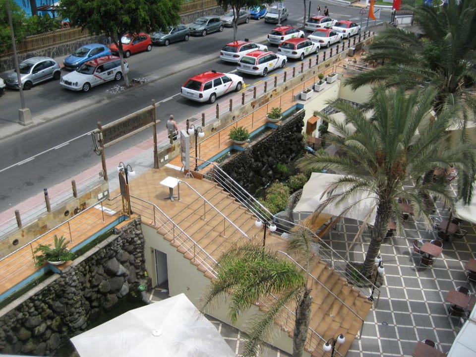 Ausblick vom Balkon auf Speiseterasse.