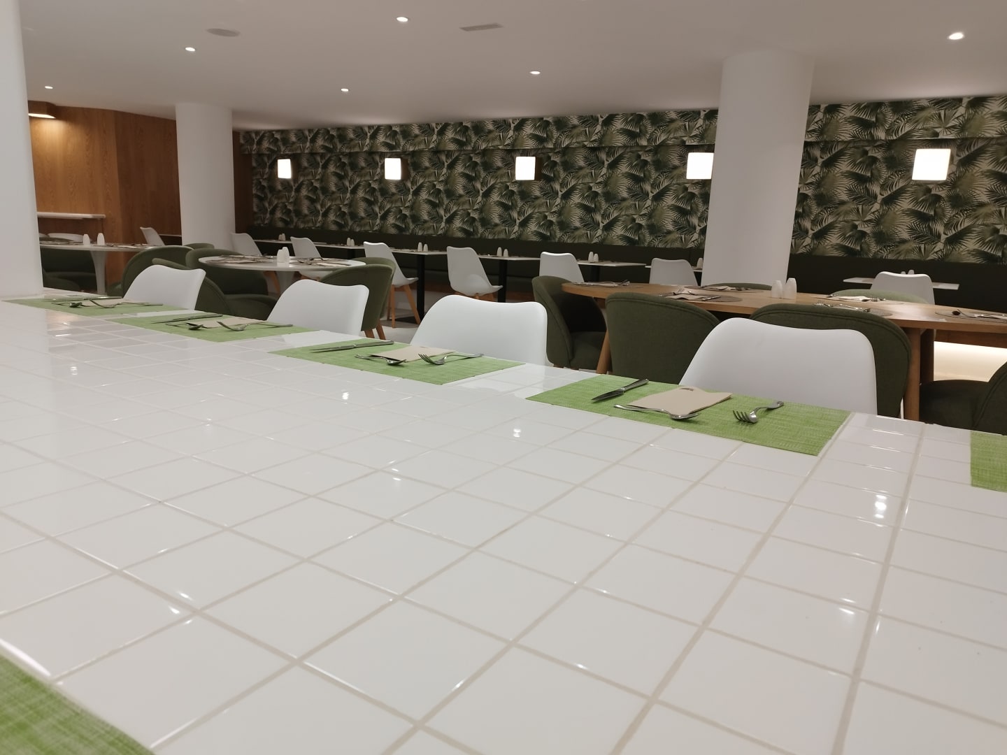 Frühstück. Viele große Tische