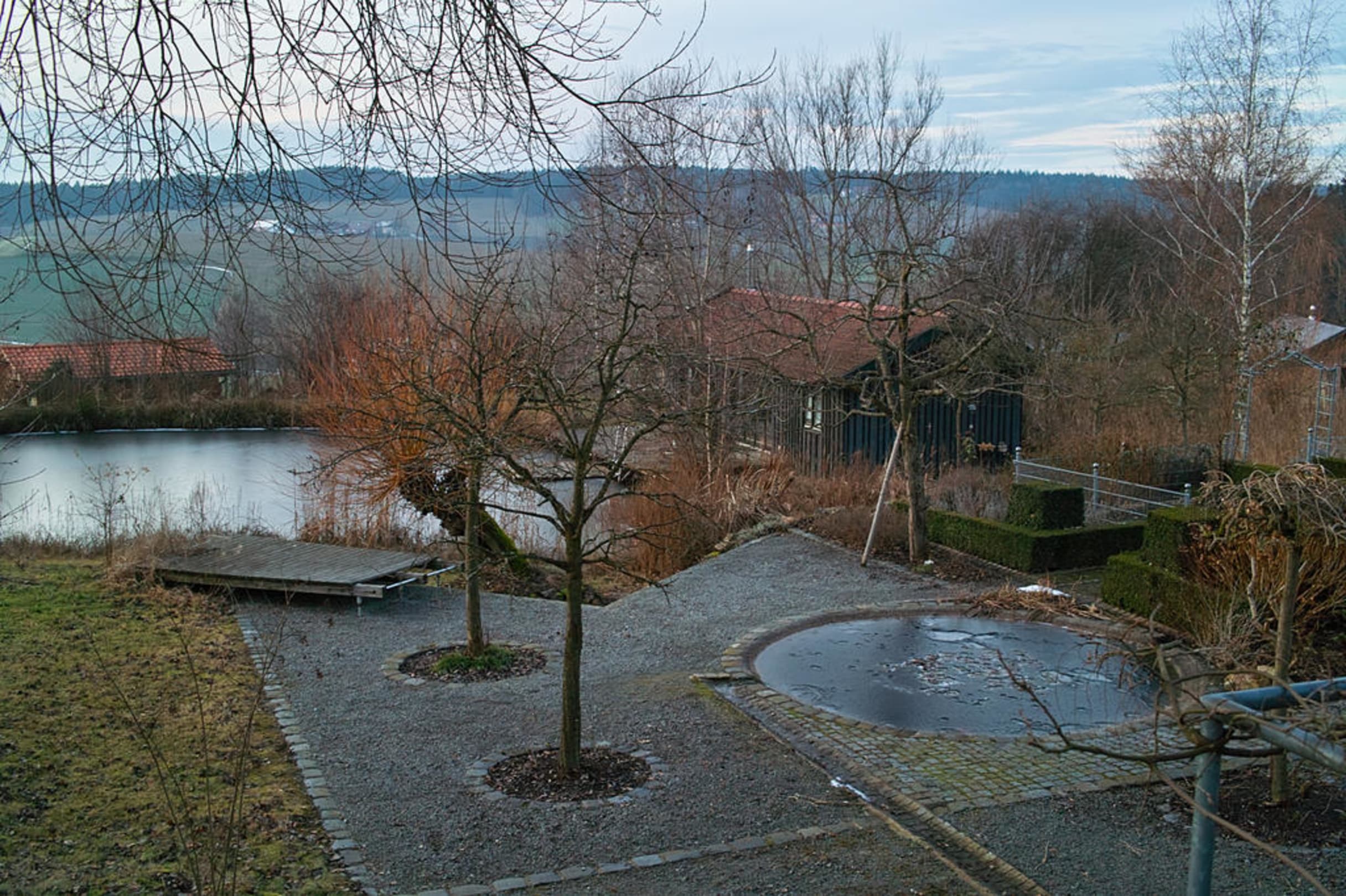Blick auf das Bootshaus vom Haupthaus aus