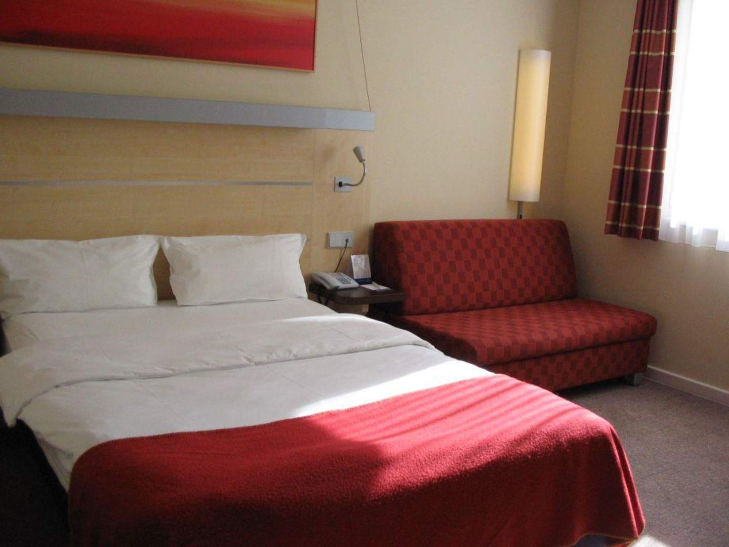 Das ist das Bett mit der großen Decke und das Sofa. Also wir haben gut in dem Bett geschlafen, könnte aber auch daran gelegen haben das wir Abend auch total kaputt waren.
