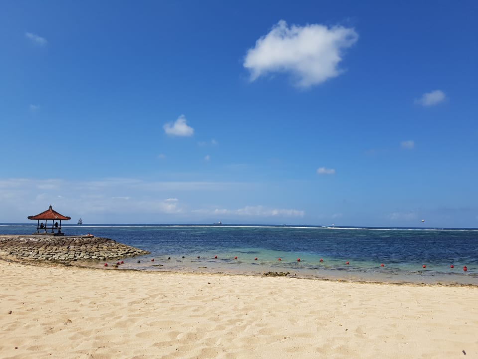 Hotelstrand mit abgesperrtem Schwimmbereich.