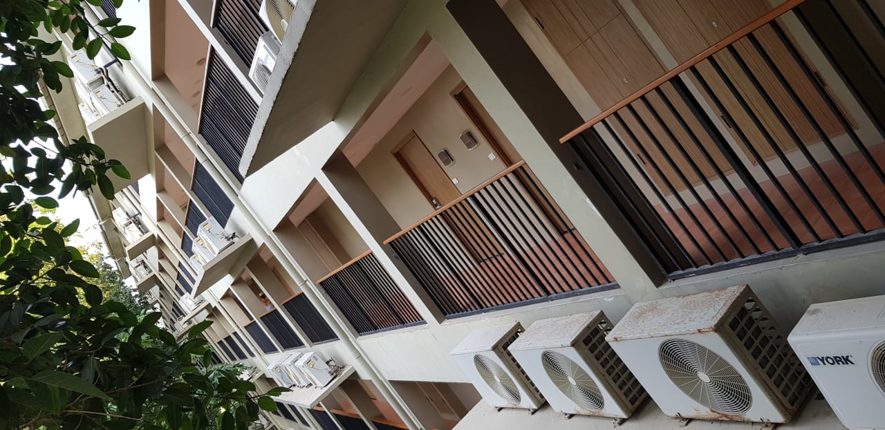 Keine schöne Ansicht. Das Hotel steht relativ eng zu Nachbarhotels. Die vielen Klimaanlagen tragen zu einer entsprechenden Geräuschkulisse bei