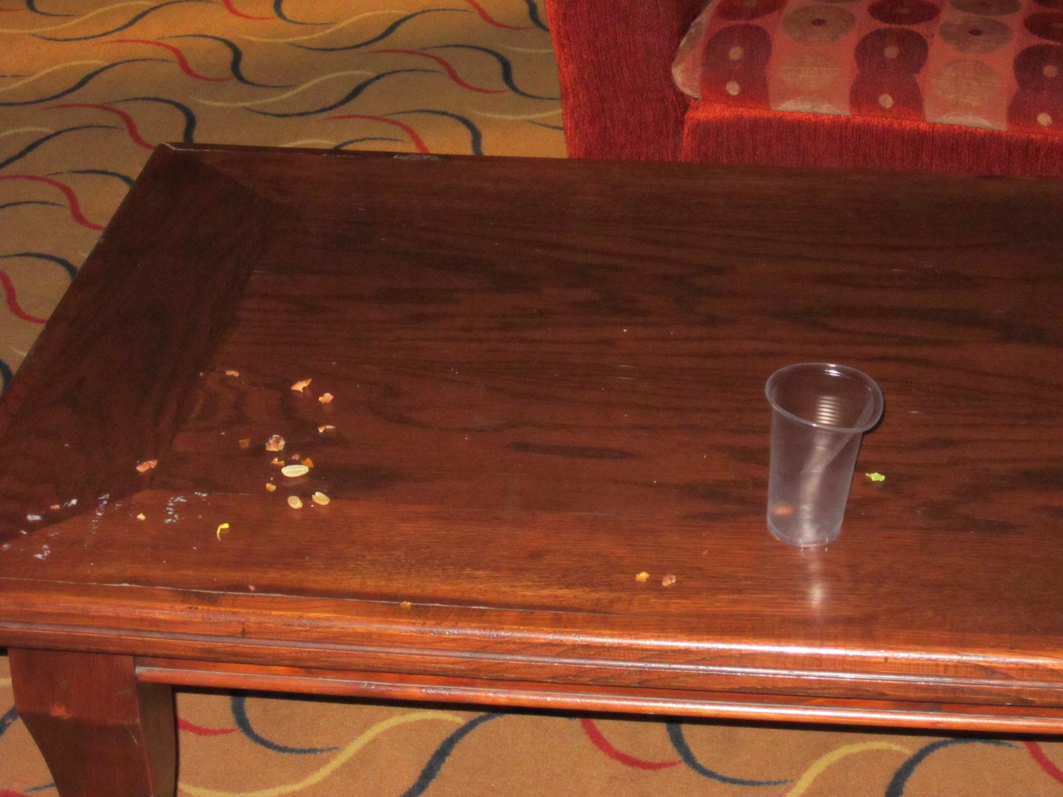 Dreckige Tische um 7 Uhr morgens.
