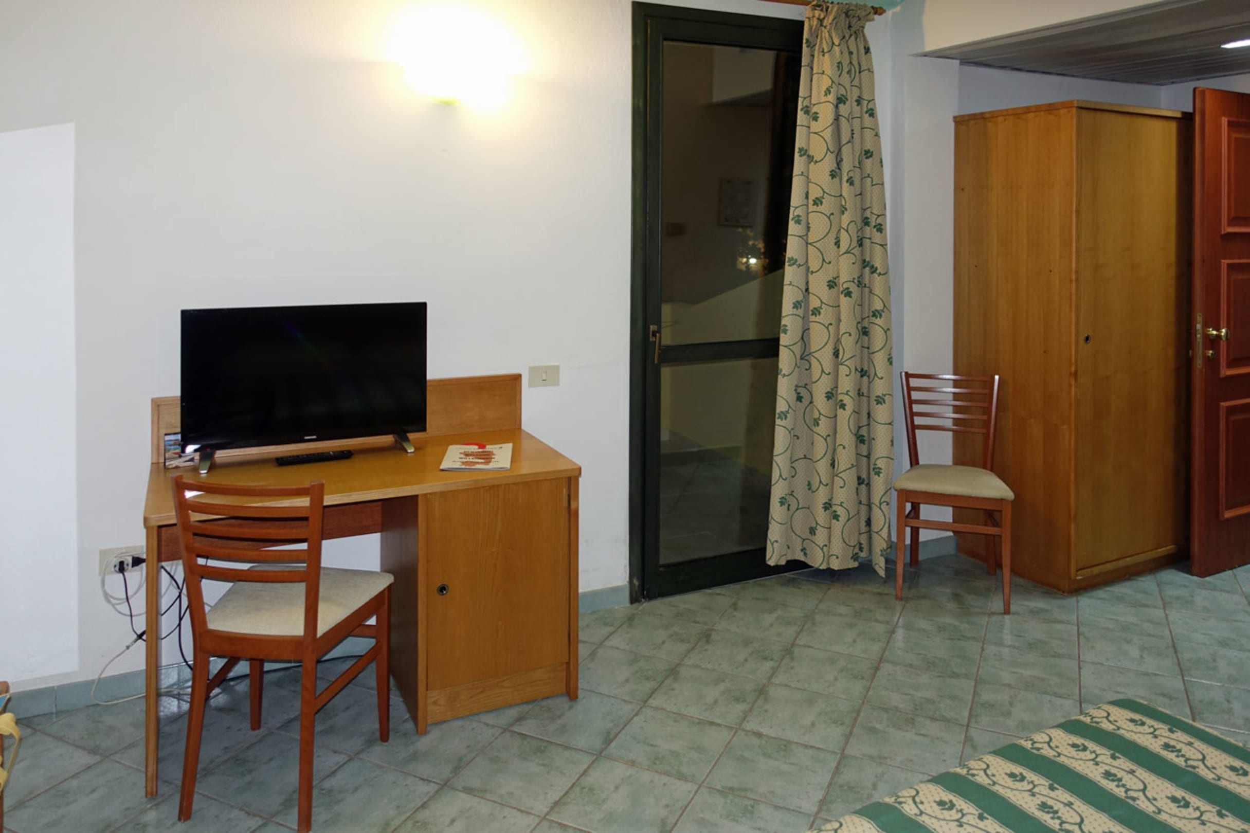Schreibtisch mit Minibar im Zimmer 410