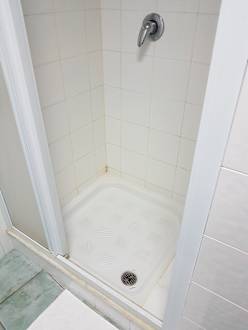 Das erste Zimmer im Hauptgebäude. Aus dem Abfluss kroch die Spinne.
